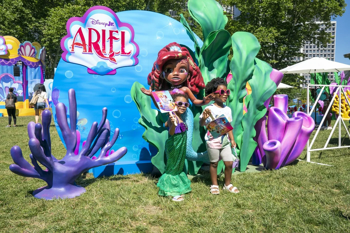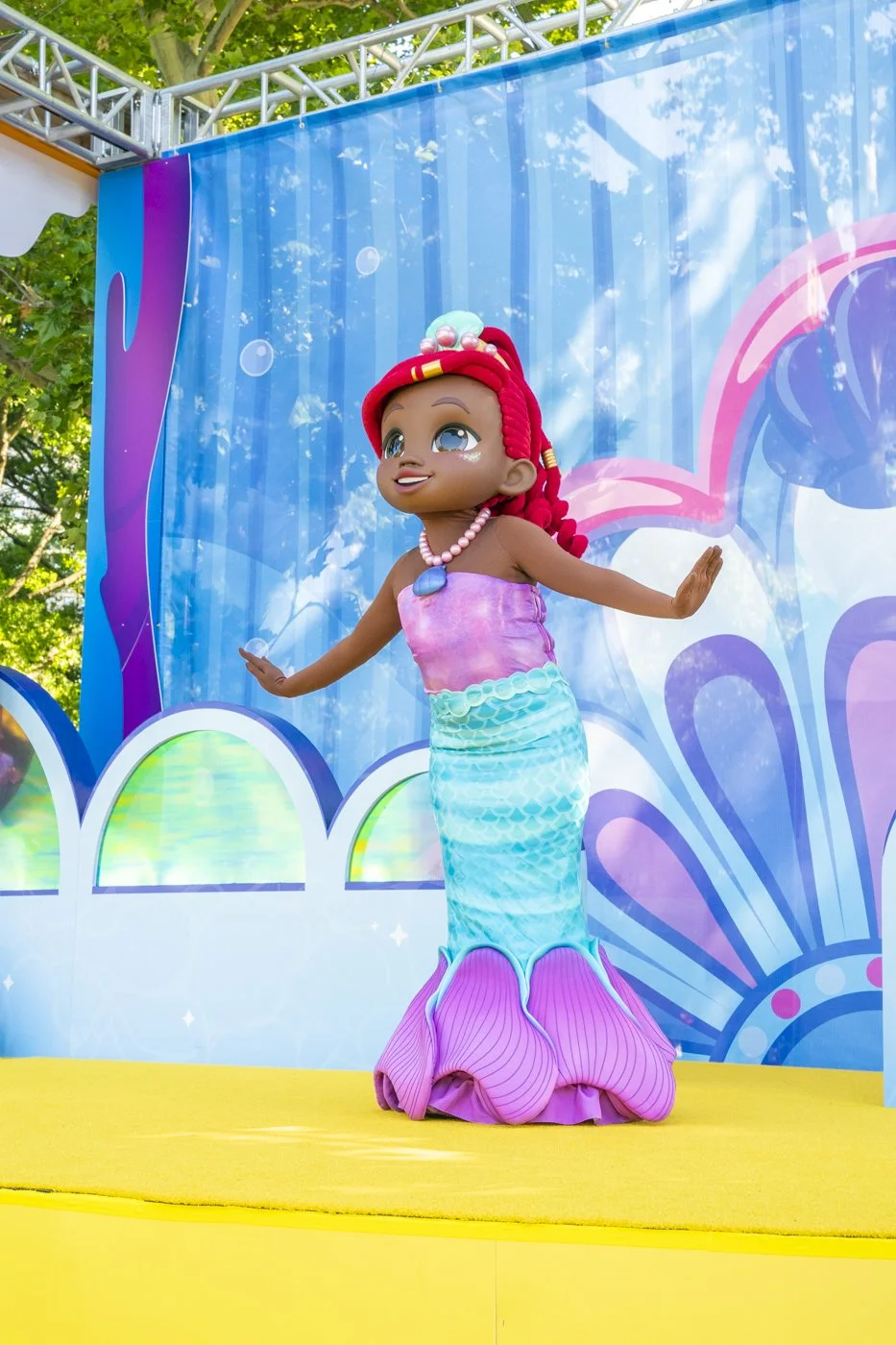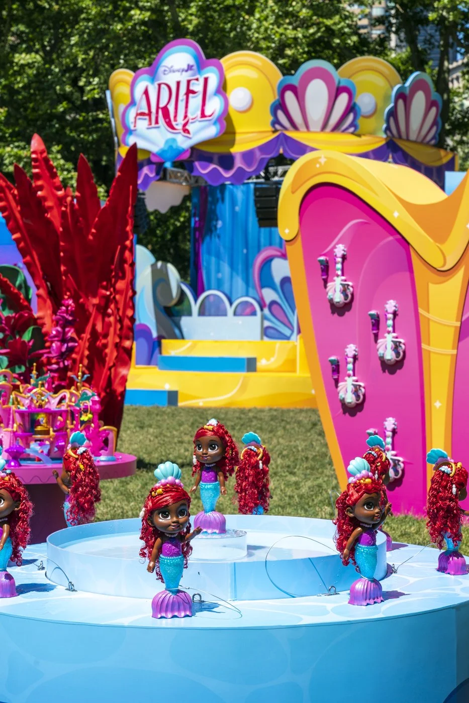 Highlights included bubble art at Tanti Ursula’s Apothecary, mer-ling makeovers, Flounder’s shipwreck obstacle course, and Ariel’s Palace Play area with upcoming toys—all designed for sensory and ADA-inclusive fun.